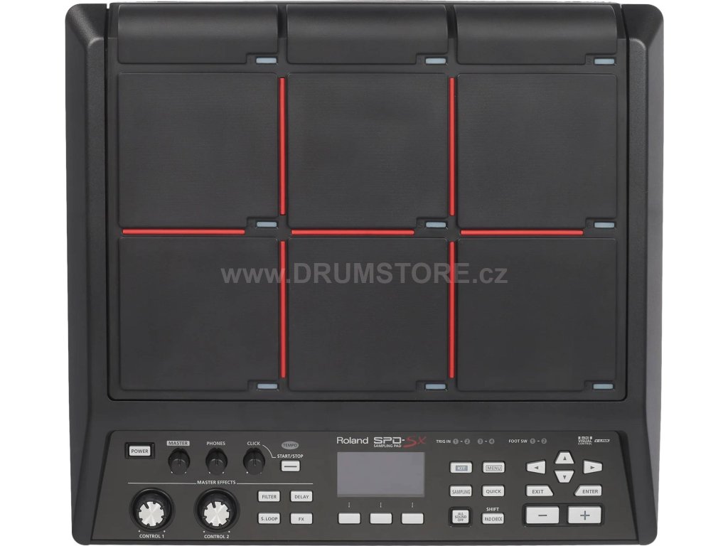 SPD-SX je vybaven devíti vysoce citlivými gumovými pady se dvěma nezávislými ovládacími knoby a čtyřmi speciálními tlačítky efektů. Nejpokročilejší trigger technologie Roland zaručuje dokonalou přesnost a plný dynamický rozsah, na velkém podsvíceném LCD displeji snadno přečtete data v jakémkoliv prostředí, kde hrajete. Každý pad má svou LEDku, která vyznačuje aktuální stav padu. Když spouštíte fráze samplu, svítí ty LEDky, jejichž pady hrají, ostatní ne. Kromě toho LEDky mění intenzitu podsvícení podle aktuální úrovně audio signálu (podobně jako je tomu na stupnicích mixpultu). Vysoce kontrastní červená dělicí čára pomáhá rozeznat zóny padu i na ztemnělém pódiu.